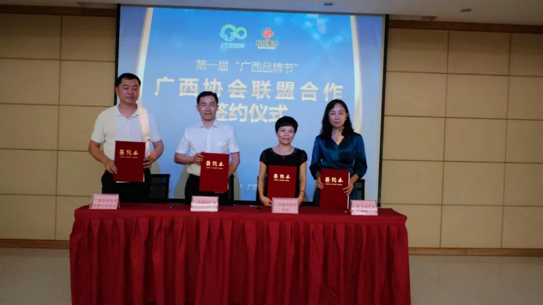 廣西協(xié)會聯(lián)盟合作簽約儀式也同時舉行。廣西商標(biāo)協(xié)會、廣西建筑裝飾協(xié)會、廣西安全技術(shù)防范行業(yè)協(xié)會及廣西文化產(chǎn)業(yè)協(xié)會四大協(xié)會會長進(jìn)行簽約,共建“廣西品牌節(jié)”。