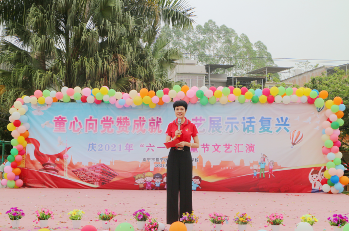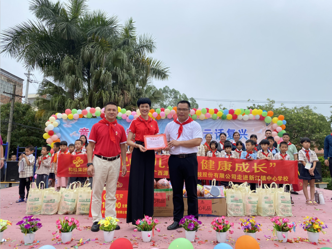 慰問組一行還觀看了由全體師生精心準(zhǔn)備的慶六·一文藝表演,并向?qū)W校捐贈一批體育用品。和桂集團副總裁、源生堂執(zhí)行總經(jīng)理舒志華在講話中給孩子們送上祝福,鼓勵他們要樹立遠大理想,刻苦學(xué)習(xí)知識,鍛煉強健體魄,以理想為筆,進取為墨,書寫人生新篇章;要學(xué)習(xí)革命先輩“舍小家為大家”崇高精神,珍惜當(dāng)下優(yōu)越的環(huán)境和條件好好學(xué)習(xí),健康成長,爭做新時代的接班人。